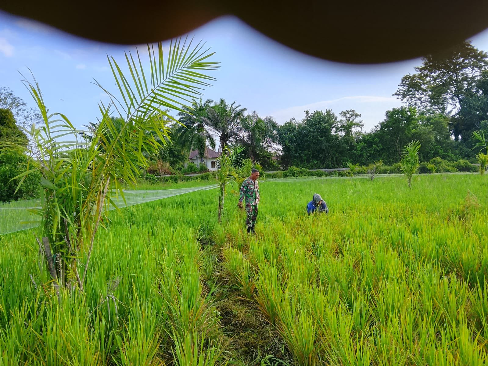 <p>Babinsa Serka Muhammad Daud dan Sertu T. Herman hadir bukan sekadar memantau, tetapi benar-benar turun tangan membantu petani membersihkan gulma yang tumbuh di sela tanaman padi. Kegiatan sederhana di lahan pertanian itu menjadi bagian dari upaya mendukung ketahanan pangan sekaligus mempererat hubungan antara TNI dan masyarakat.</p>