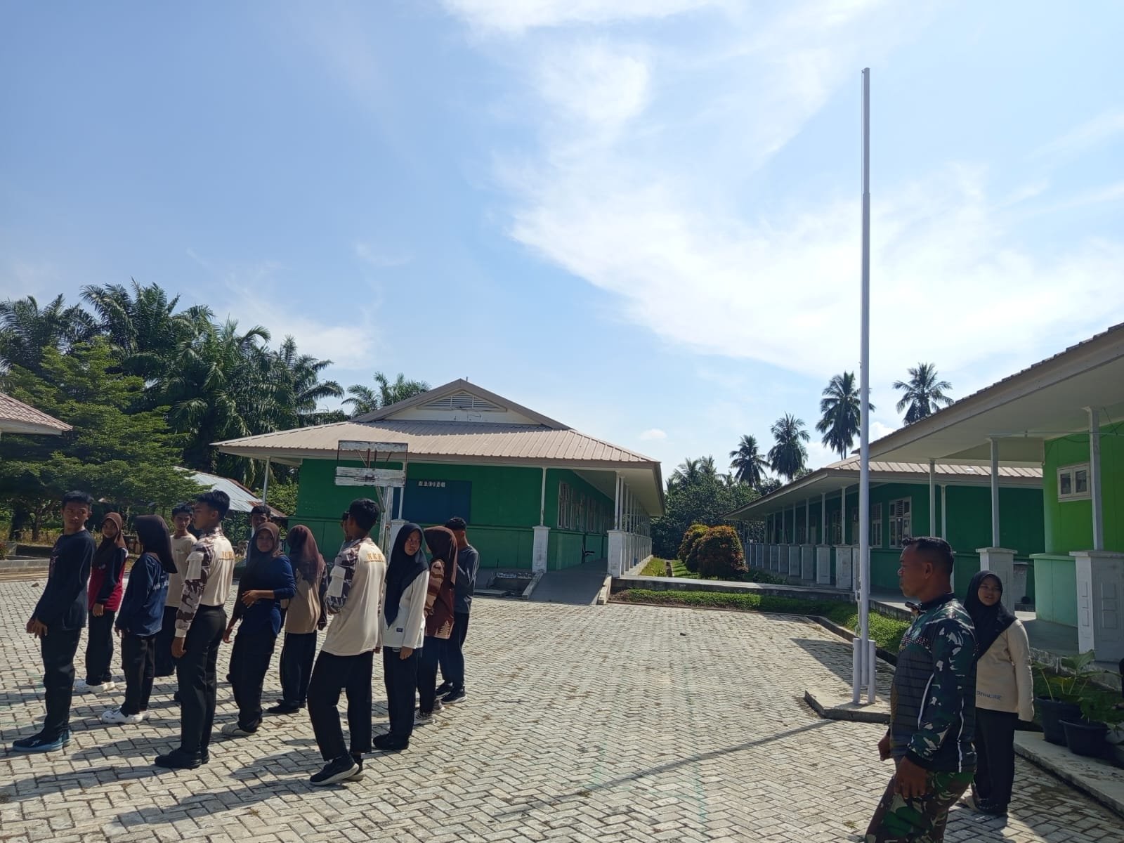 ACEH JAYA — Batuud Koramil 06/Teunom Kodim 0114/Aceh Jaya, Sertu Arief W.P., melaksanakan kegiatan pelatihan Peraturan Baris Berbaris (PBB) variasi kepada siswa-siswi Pramuka Saka Wira Kartika binaan Koramil 06/Teunom, Minggu (18/01/2026).