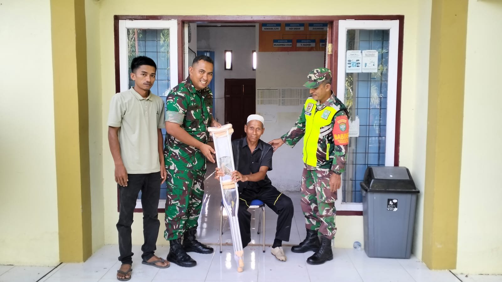 ACEH BARAT – Komandan Koramil 01/SM Kodim 0105/Abar Kapten Inf Hendrianus Putra Di Dampingi Serma Muklasin Babinsa Koramil 01/SM Dalam Kegiatan pemberian Bantuan Berupa Tongkat Kepada Salah Satu Warga Yang cacat kaki (puntung) Di Desa Gaseu kec.Sungaimas Sabtu (04/10/2025).