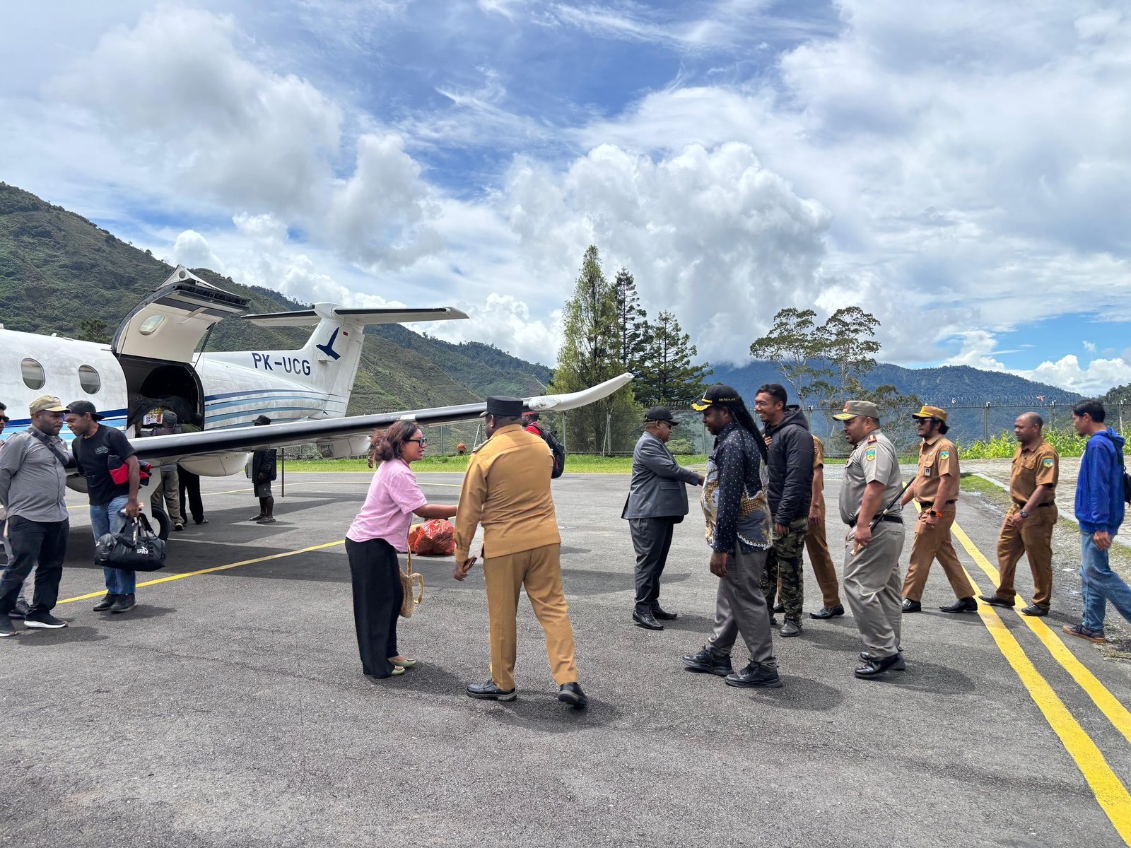 Puncak Jaya, Papua Tengah, 26 November 2025 – Bupati Kabupaten Puncak Jaya, Dr. Yuni Wonda, S.Sos., S.IP., MM, kembali ke Mulia pada Selasa (25/11/2025) setelah mengikuti rangkaian kegiatan resmi di Nabire. Kedatangannya disambut oleh Wakil Bupati Mus Kogoya, S.E., Ketua DPRD Letius Telenggen, Danpos Satgas Korpasgat Mulia, Kapten Pas Ardhean Rizky Himawan ST.r (Han), serta jajaran pejabat pemerintah kabupaten.