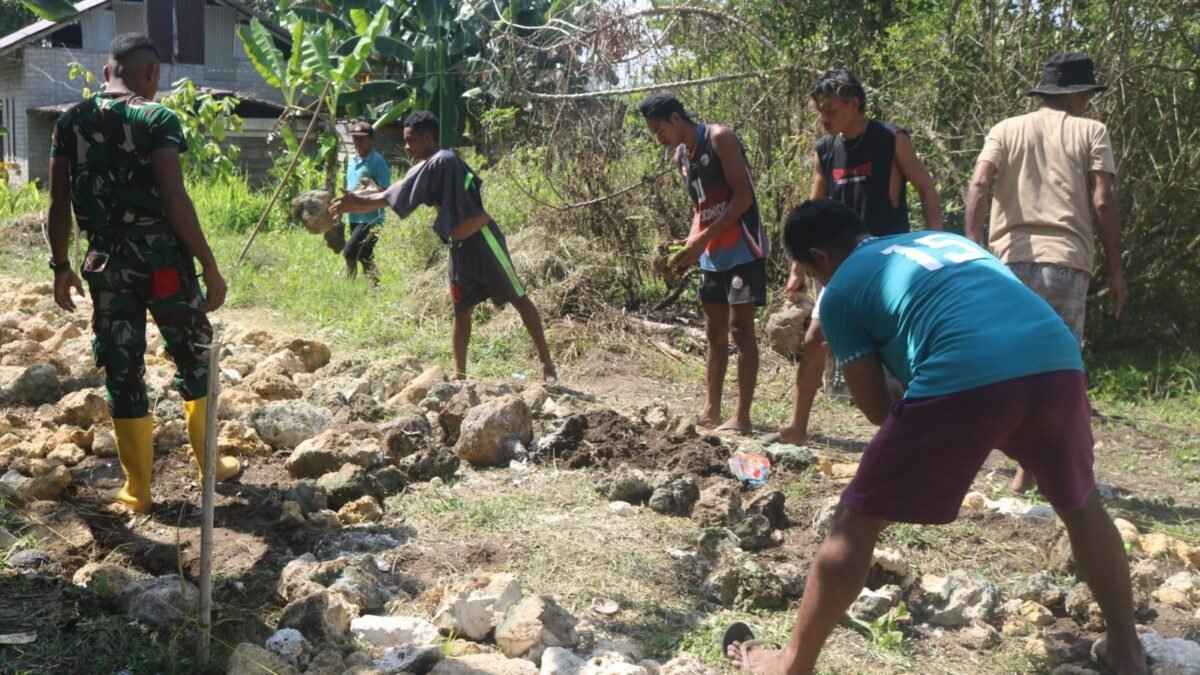 NAGAN RAYA – Di bawah terik matahari yang menggantung seperti lentera siang, anggota Satgas TMMD…