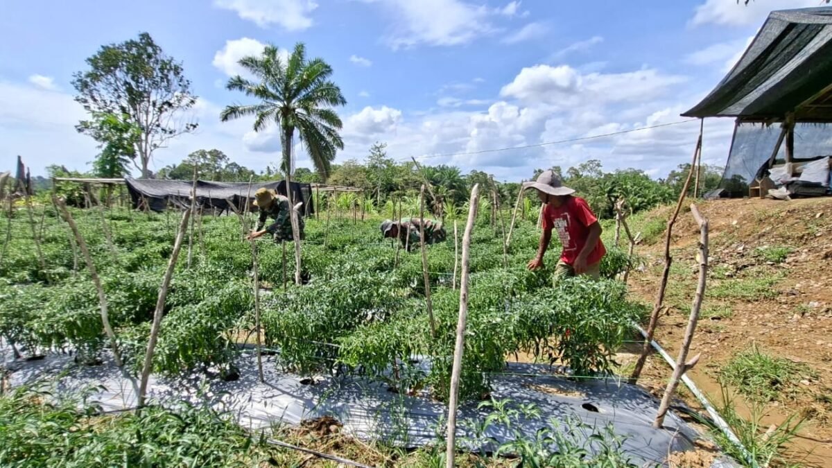 Aceh Jaya – Babinsa Koramil 0114-06/Teunom Sertu Pujianto melaksanakan pendampingan pertanian membantu petani dalam membasmi…