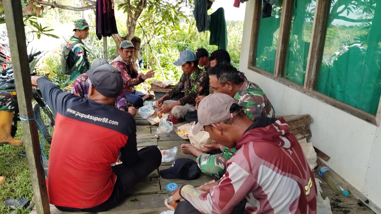 BARITO KUALA – Ada pemandangan menarik di sela pelaksanaan TMMD Ke-126 Kodim 1005/Barito Kuala di Desa Tumih, Kecamatan Wanaraya. Di tengah rindangnya pepohonan, anggota TNI bersama warga tampak menikmati makan siang sederhana. Mereka duduk melingkar di teras rumah, menikmati nasi bungkus dengan penuh keakraban.