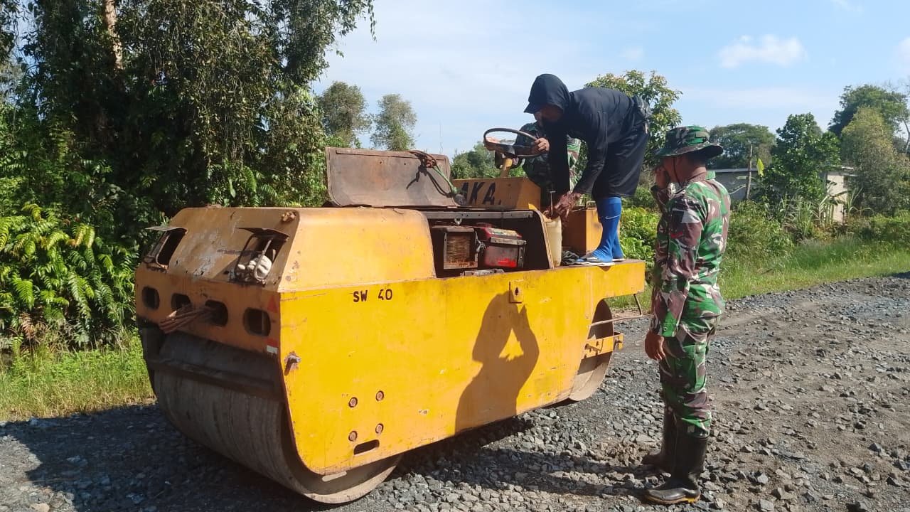 Selain memantau pembangunan, Kapten Tri juga melakukan pengecekan terhadap alat berat yang digunakan dalam pemadatan material timbunan.