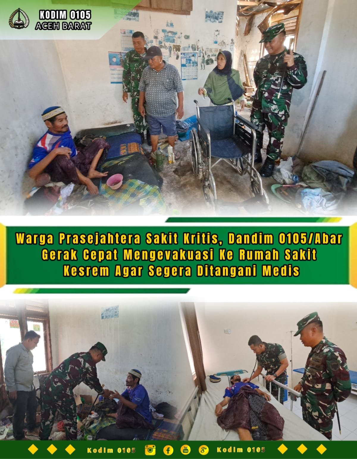 <p>Proses evakuasi dilakukan setelah Dandim mendapatkan informasi dari Babinsa bahwa salah satu warga binaannya, yakni Bapak Fatdjeri (56), yang berdomisili di Desa Padang Seurahet, mengalami sakit lumpuh dan terkendala akses transportasi. Pasalnya, jarak menuju rumah sakit cukup jauh.</p>
