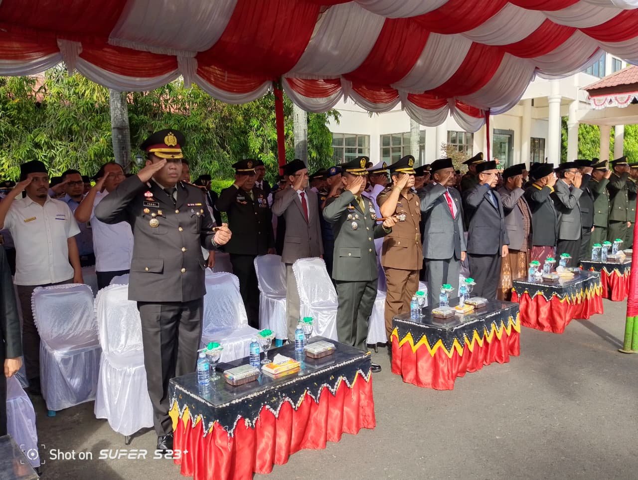 ACEH BARAT – Sebagai wujud penghormatan terhadap jasa-jasa para Pahlawan Revolusi, Dandim 0105/Abar Letkol Inf S. Kembaren, S.E., M.I.P., CFrA., bersama unsur Forkopimda lainnya mengikuti Upacara Peringatan Hari Kesaktian Pancasila di Halaman Kantor Bupati Aceh Barat, yang berlokasi di Jalan Gajah Mada, Desa Drien Rampak, Kecamatan Johan Pahlawan, Rabu (1/10/2025).