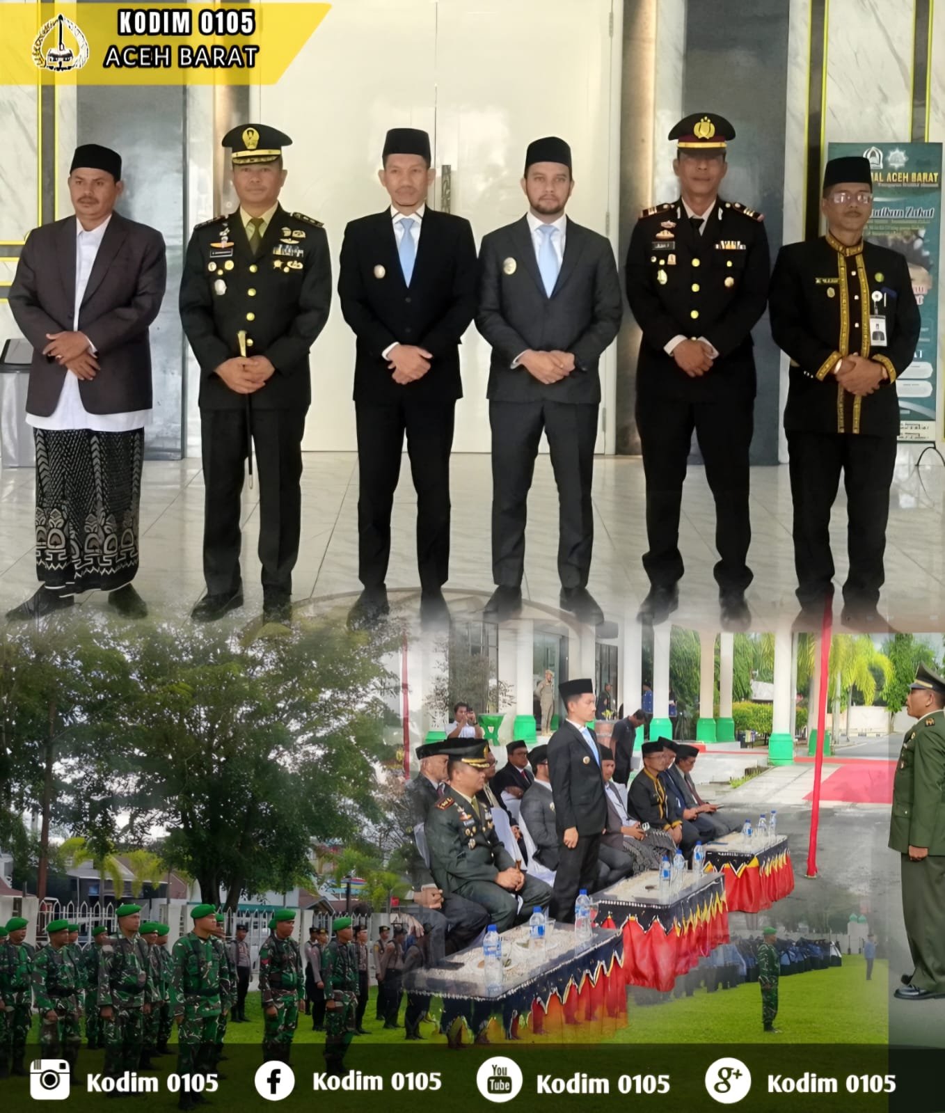 ACEH BARAT — Dandim 0105/Aceh Barat Letkol Inf S. Kembaren, S.E., M.I.P., CFrA., bersama unsur Forkopimda lainnya menghadiri Upacara Peringatan Hari Bela Negara (HBN) ke-77 Tahun 2025 yang digelar di Lapangan Hijau Kantor Bupati Aceh Barat, Jalan Gajah Mada, Desa Drien Rampak, Kecamatan Johan Pahlawan, Jumat (19/12/2025).