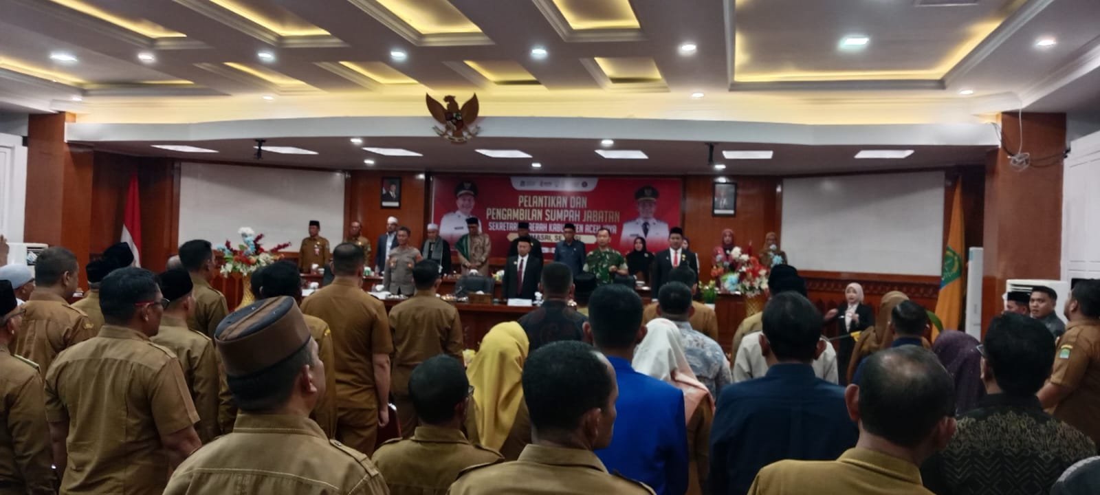 <p>Rangkaian acara berlangsung dengan tertib dan penuh khidmat. Para pejabat yang dilantik mengikuti prosesi pengambilan sumpah jabatan sebagai bentuk komitmen moral dan tanggung jawab dalam menjalankan tugas pemerintahan. Momen tersebut juga menjadi simbol awal dari tanggung jawab baru yang harus diemban dalam jabatan masing-masing.</p>