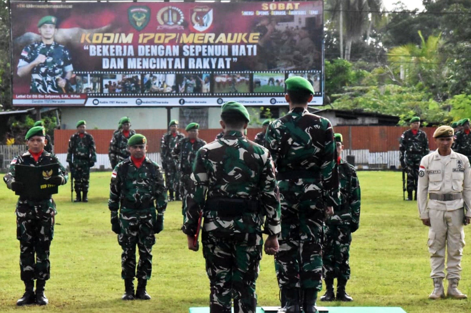 Upacara bendera tujuh belasan diikuti ratusan prajurit dan PNS yang terdiri dari Korem 174/ATW dan Kodim 1707/Merauke, termasuk personel Kowad dari Korem 174/ATW serta para Perwira Pertama (Pama) gabungan Korem 174/ATW dan Kodim 1707/Merauke.(1707).