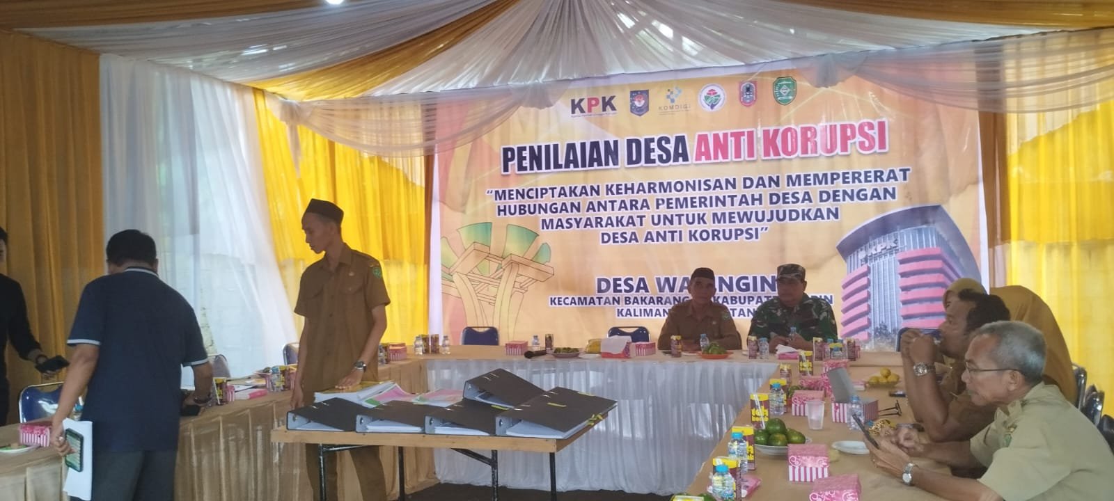 Kegiatan Penilaian Desa Anti Korupsi tersebut dihadiri oleh berbagai unsur penting, di antaranya Plt. Sekcam Bakarangan mewakili Camat Bakarangan, Tim KPK Provinsi Kalimantan Selatan, Kepala Desa Waringin, Inspektorat Provinsi Kalimantan Selatan, Inspektorat Kabupaten Tapin, Danpos Koramil 1010-02/Tambaruntung, Ketua TP PKK Desa Ketapang, Tokoh Masyarakat Desa Waringin, Aparat Pemerintah Desa Waringin.