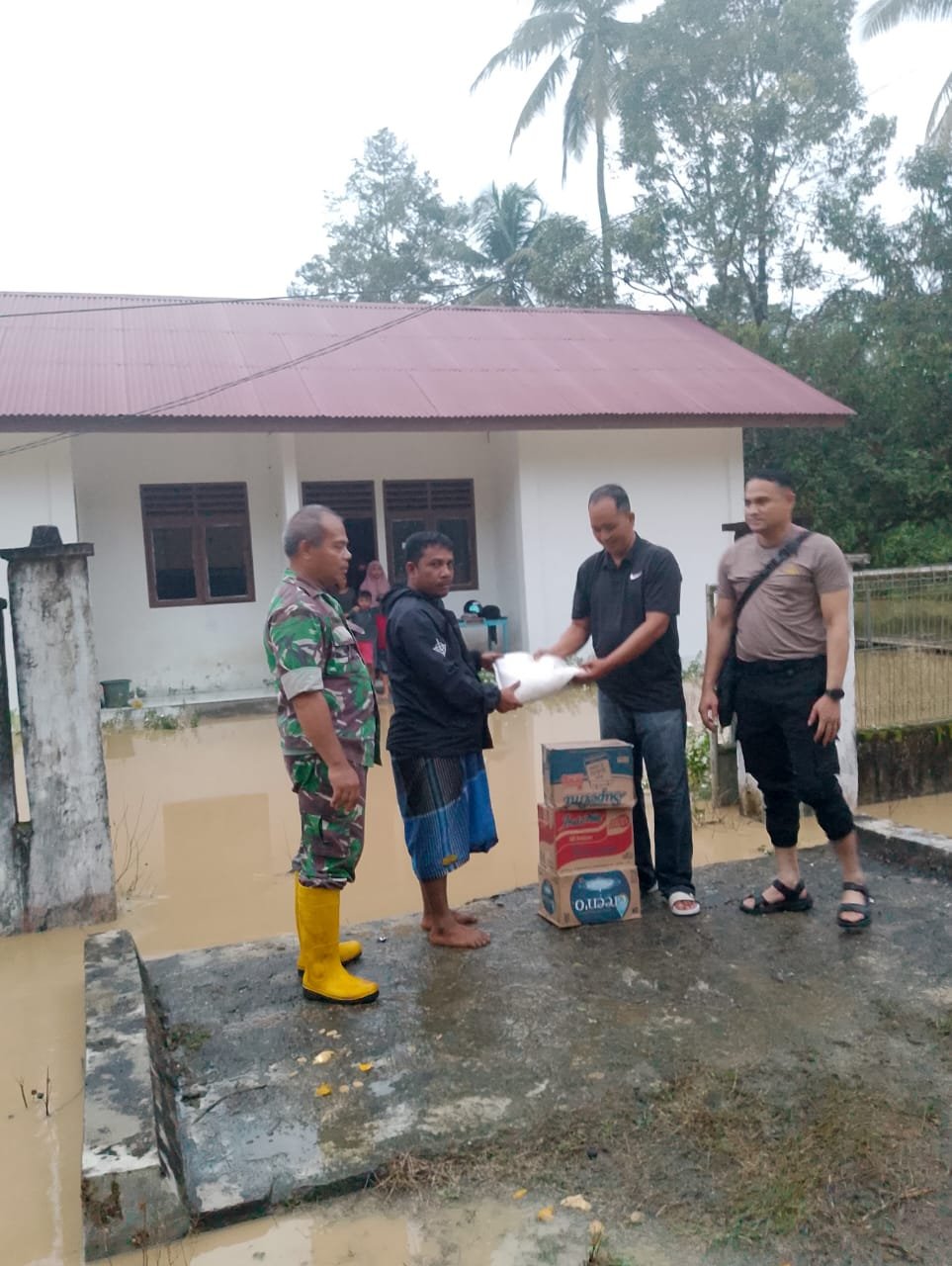 ACEH BARAT – Musibah banjir yang melanda sejumlah gampong di Kecamatan Woyla Barat, Kabupaten Aceh Barat, memantik perhatian berbagai unsur Muspika untuk bergerak cepat memberikan bantuan kepada warga terdampak. Komandan Koramil 0105-10/Woyla Barat, Kapten Inf Rahmad Edy Kodim 0105/Aceh Barat, bersama Camat Woyla Barat Kamaruddin, S.E., serta unsur Muspika lainnya, terjun langsung ke lapangan menyalurkan bantuan ke beberapa titik pengungsian.