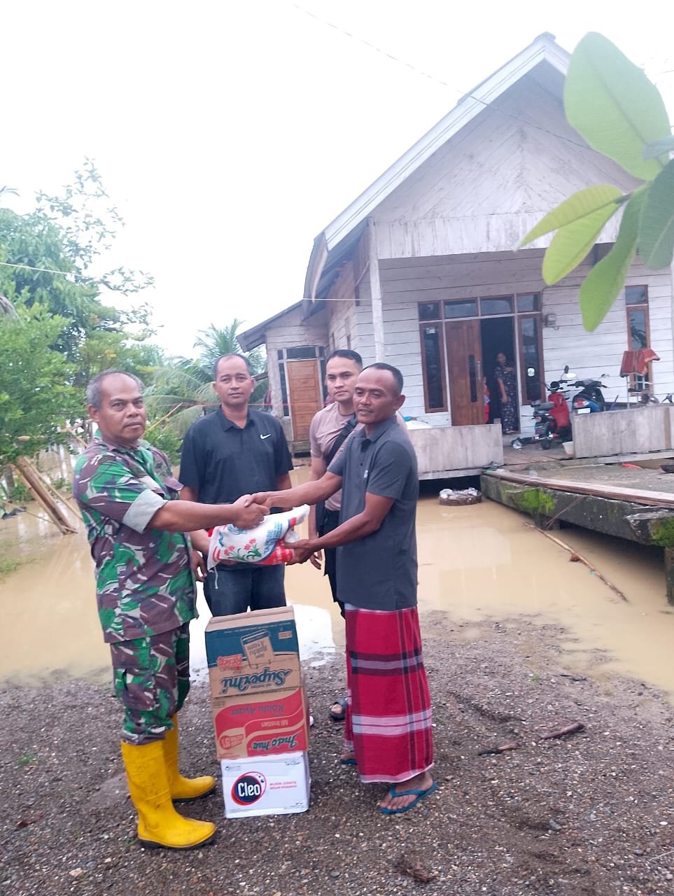 ‎Danramil 0105-10/Woyla Barat Bersama Unsur Muspika Memberikan Bantuan ke Pengungsian Musibah Banjir di Wilayah Kecamatan Woyla Barat
