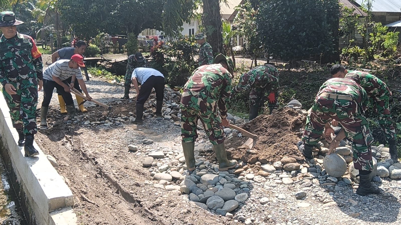 Semangat gotong royong terlihat jelas ketika TNI dan masyarakat bekerja tanpa mengenal lelah. Kehadiran komandan menjadi seperti angin yang mendorong layar kapal agar terus melaju.