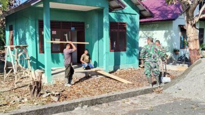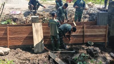 ACEH BARAT – Di bawah terik matahari Desa Pasi Aceh, suara palu dan gergaji berpadu dengan canda warga. Prajurit dan masyarakat berdiri sejajar, menyusun papan mall wingwall sebagai bagian dari program TMMD Reguler ke-127 Kodim 0105/Abar.
