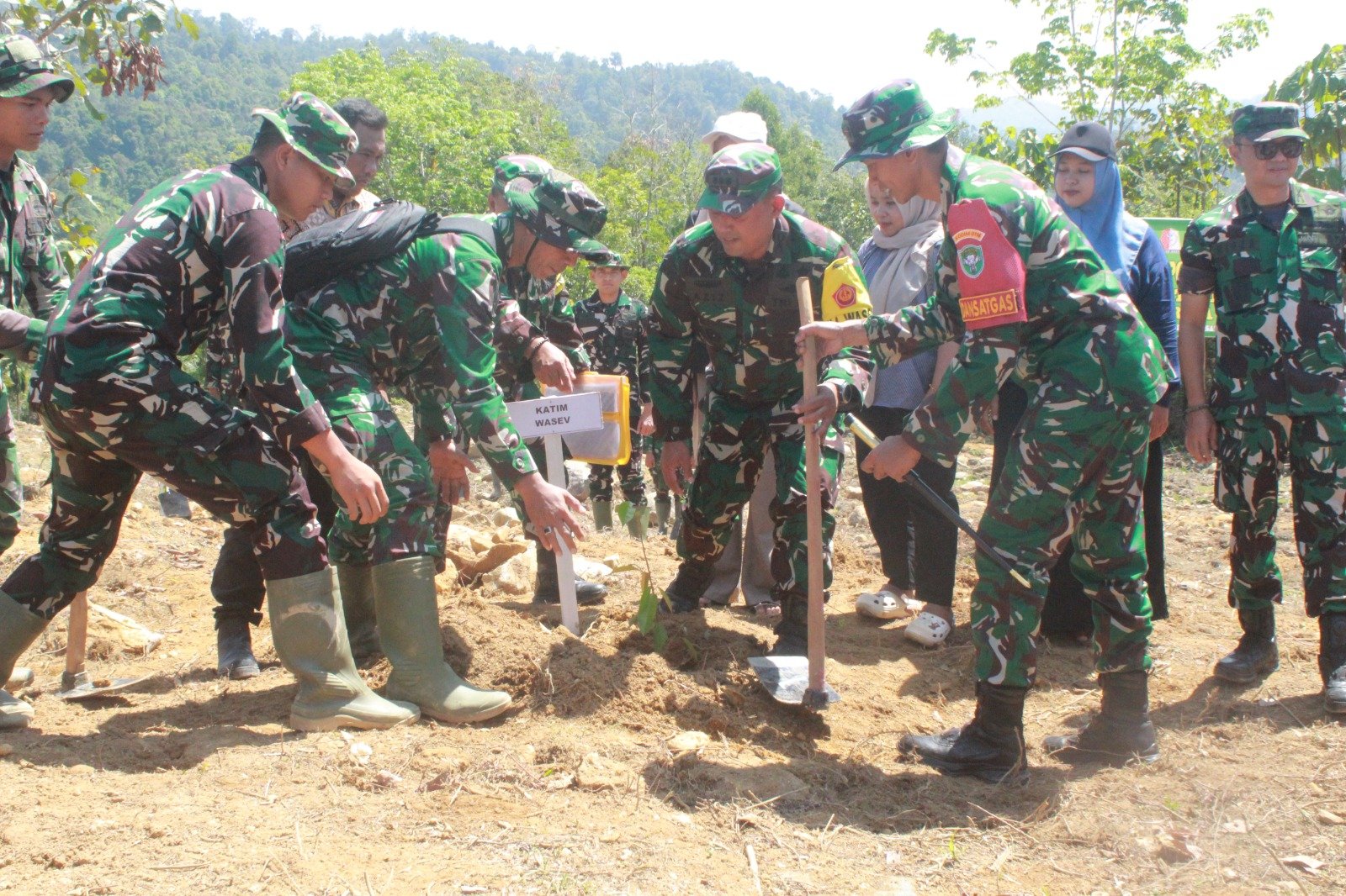 <p>Para prajurit terlihat bergantian menggali tanah, menempatkan bibit pohon, lalu menutupnya kembali dengan tanah. Proses sederhana itu berlangsung penuh kebersamaan.</p>
