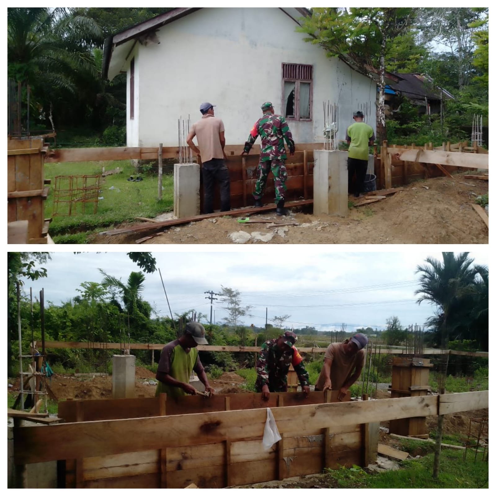 Babinsa melibatkan diri secara langsung dalam pelaksanaan pembangunan rumah warga di wilayahnya, tepatnya di Desa Layung, Kecamatan Bubon, Kabupaten Aceh Barat.