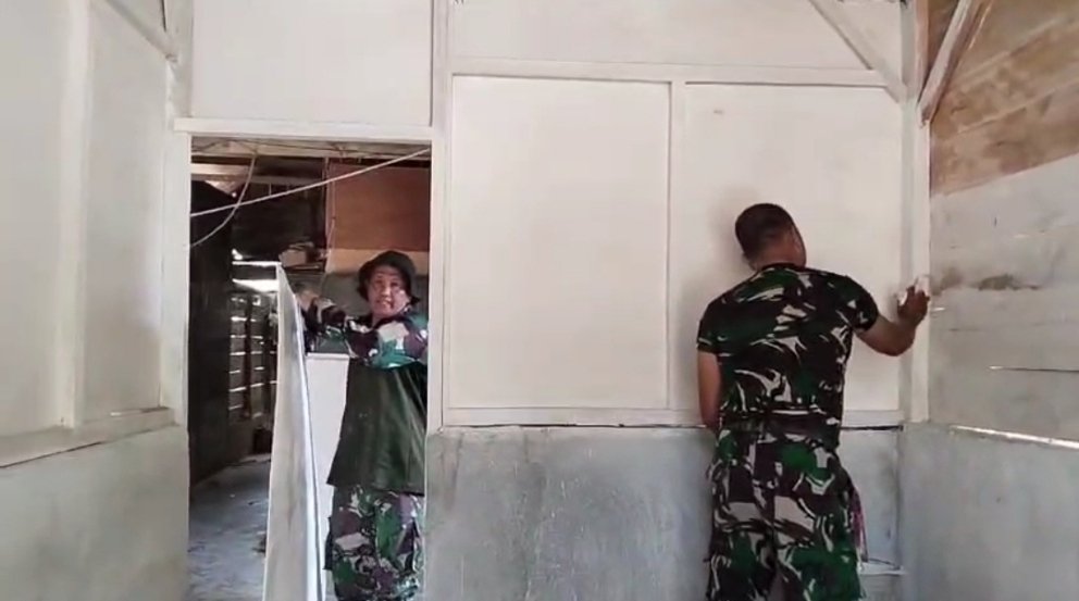 Sejak pagi hari, suasana gotong royong terlihat begitu hidup. Personel TNI dan warga bergantian memegang kuas, meratakan warna pada setiap sisi dinding rumah. Cat yang menempel perlahan menutup bekas dinding lama yang kusam, seakan menghapus cerita lama dan menggantinya dengan wajah baru yang lebih cerah.