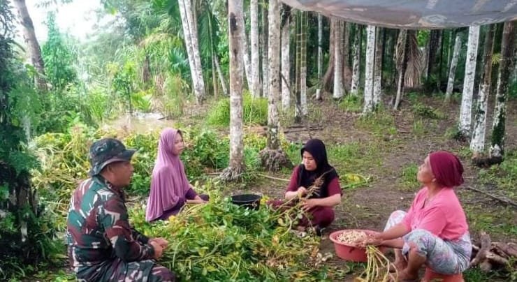 Kegiatan tersebut berlangsung di Desa Oboh, Kecamatan Rundeng, Kota Subulussalam, Aceh, Jumat (20/03/2026). Dalam kesempatan itu, Sertu Muryadin turut terjun langsung bersama warga membantu proses pengolahan hasil kebun kacang tanah.