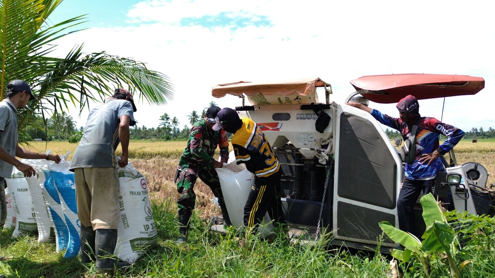 Kolaborasi tersebut terlihat jelas saat proses panen. Selain personel TNI, hadir juga perangkat desa dan kelompok tani yang bersama-sama memastikan proses panen dengan combine harvester berjalan lancar. Momen ini sekaligus dimanfaatkan Babinsa untuk bersilaturahmi, menyerap aspirasi petani, dan memperkuat kedekatan TNI dengan rakyat.