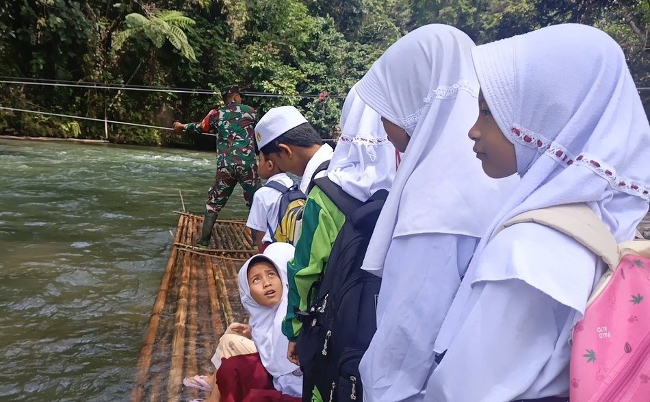 “Rakit bambu ini adalah solusi jangka pendek untuk masyarakat agar bisa mengakses desa sebelah dalam beraktivitas dan demi kelancaran anak-anak menuju ke sekolah untuk menuntut ilmu,” ujar Kopda Harlan.
