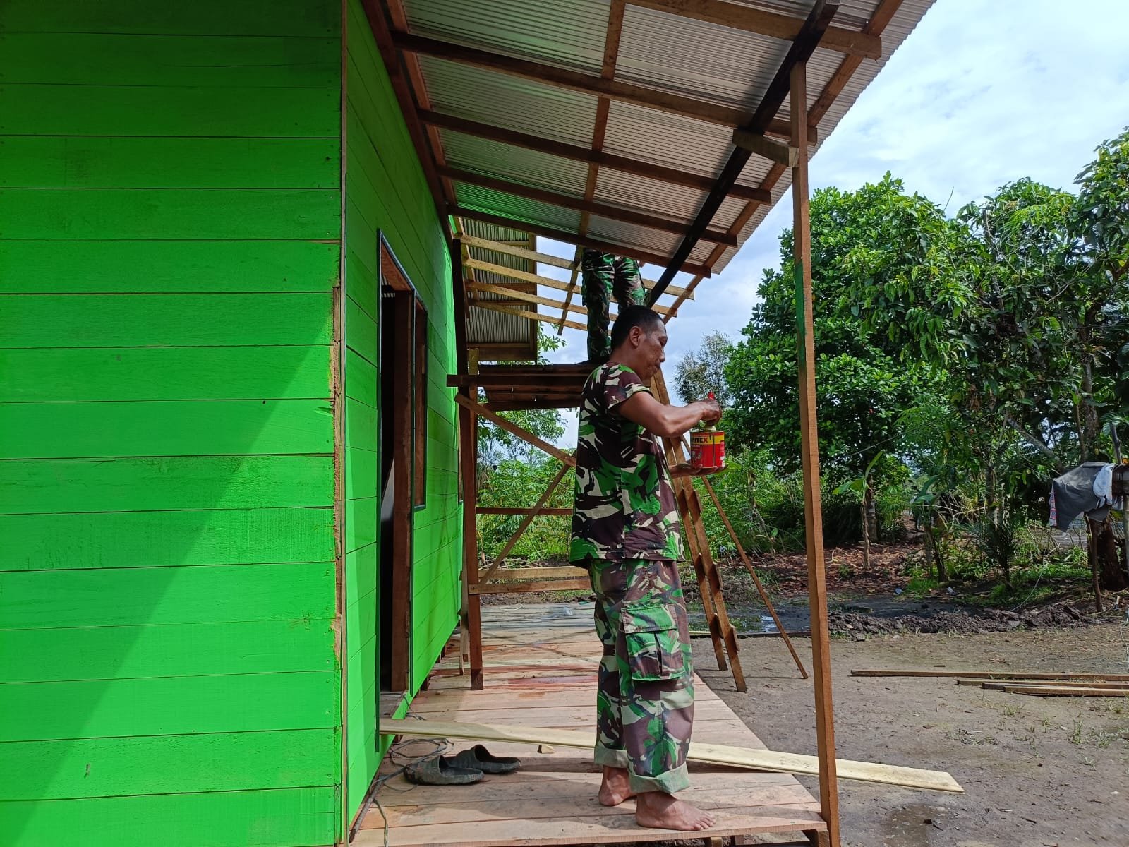BARITO KUALA – Suara palu bertalu dari sudut Desa Tumih, Kecamatan Wanaraya. Di antara tumpukan papan dan cat, tampak sejumlah prajurit TNI bersama warga saling bahu-membahu memperbaiki rumah sederhana milik Kai Salamun, salah satu warga lanjut usia yang menjadi penerima manfaat program TNI Manunggal Membangun Desa (TMMD) Ke-126 Kodim 1005/Barito Kuala.