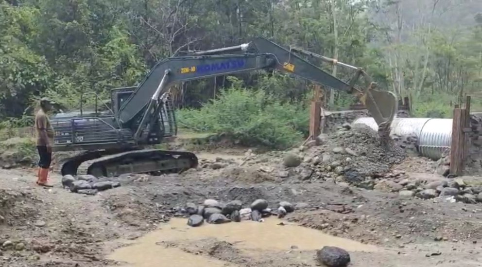 Memasuki hari ke-10, progres pembangunan di titik Desa Sikundo kini beranjak ke tahap penimbunan oprit. Pada fase ini, pekerjaan difokuskan pada pengurukan tanah menggunakan material pilihan (sirtu) yang dikerjakan dengan bantuan alat berat excavator guna mempercepat dan memaksimalkan hasil.