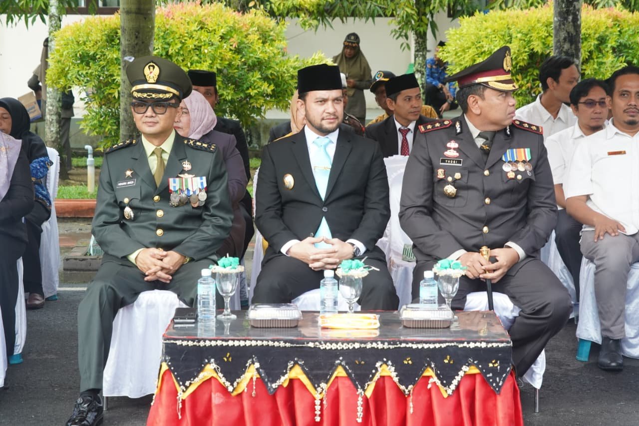 Upacara peringatan ini berlangsung khidmat dan penuh makna, dengan rangkaian kegiatan pengibaran bendera Merah Putih, mengheningkan cipta, pembacaan pesan-pesan perjuangan para pahlawan nasional, serta amanat dari Bupati Aceh Barat sebagai inspektur upacara.