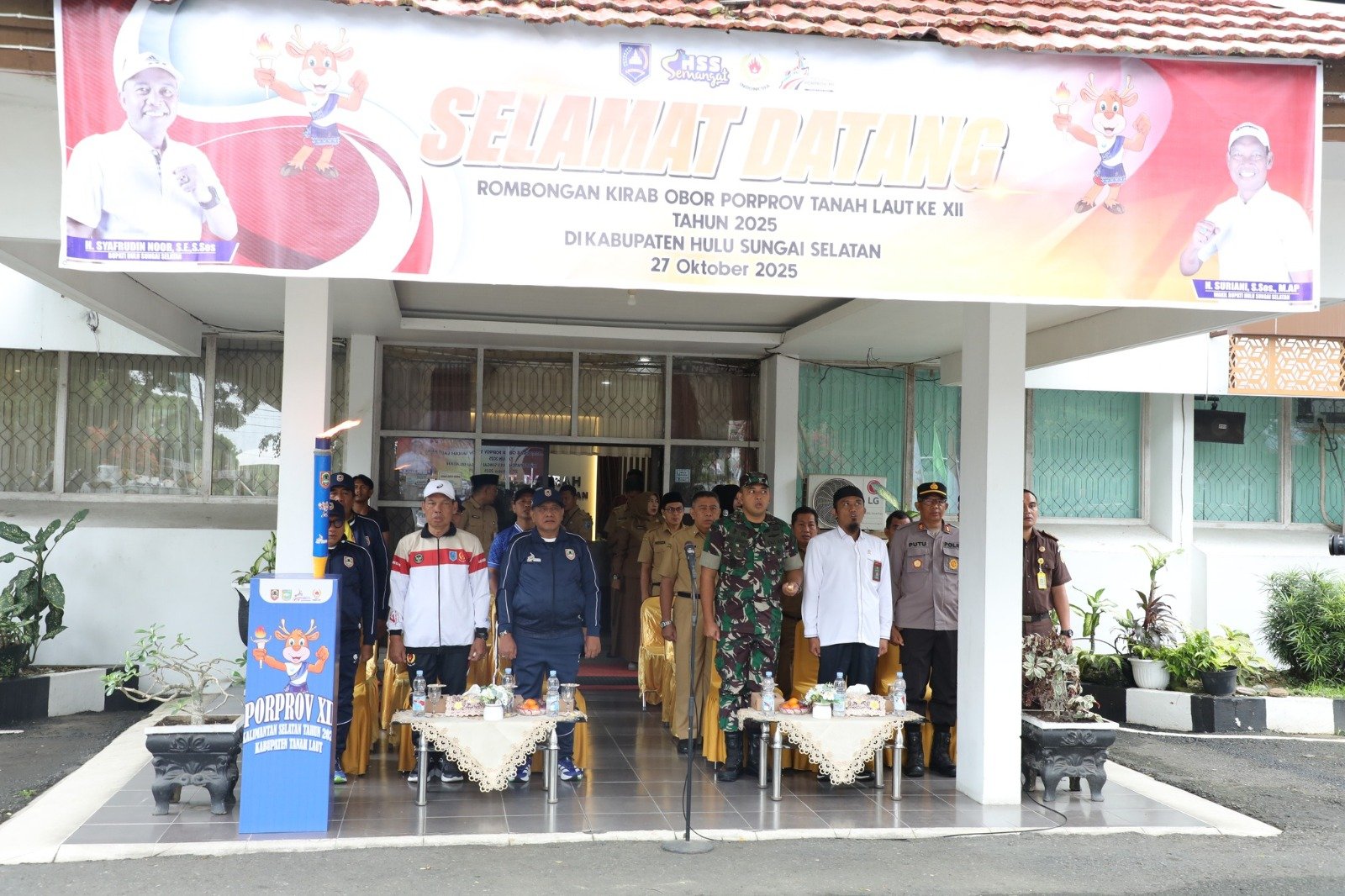 Berlokasikan di halaman kantor Bupatai HSS, Api obor Porprov XII tersebut diserahkan secara resmi oleh Wakil Bupati HSS, H. Suriani kepada Wakil Bupati Tanah Laut, H. M. Zazuli yang hadir sebagai perwakilan tuan rumah penyelenggaraan Porprov XII Kalimantan Selatan tahun ini