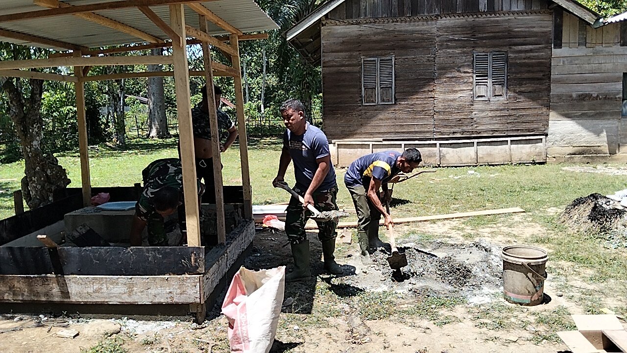 <p>Pembangunan jamban dilakukan secara gotong royong antara personel TNI dan warga. Kebersamaan tersebut menjadi gambaran nyata kemanunggalan TNI dengan rakyat.</p>