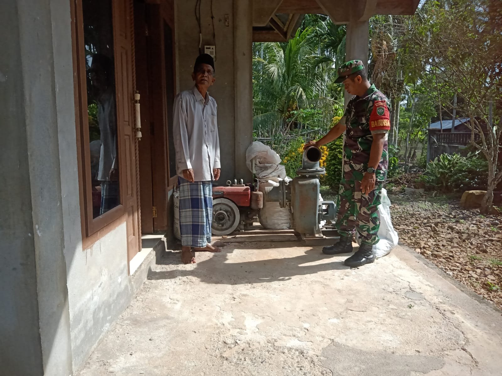 Kegiatan yang dilakukan Babinsa sebagai wujudkan perhatian dalam mengupayakan yang terbaik bagi para petani dengan mengecek langsung kondisi kelayakan mesin pompa air, apakah rusak atau masih berfungsi.