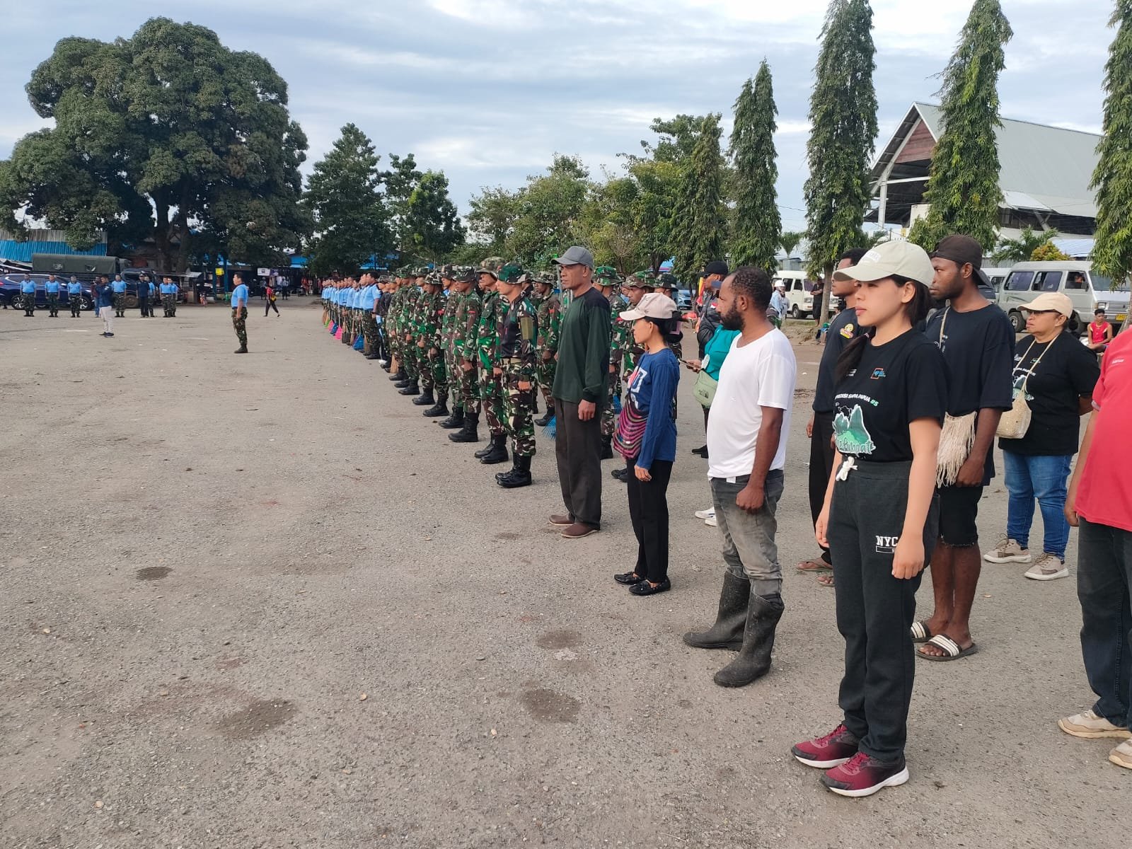Tidak hanya personil dari TNI AU saja, kegiatan yang di awali dengan Apel pengecekan ini juga turut melibatkan masyarakat setempat hingga para penjual yang berada di Pasar, selain untuk membersihkan lingkungan tujuan nya juga untuk meningkatkan rasa memiliki akan lingkungan yang menjadi tempat mata pencaharian masyarakat Sentani ini.