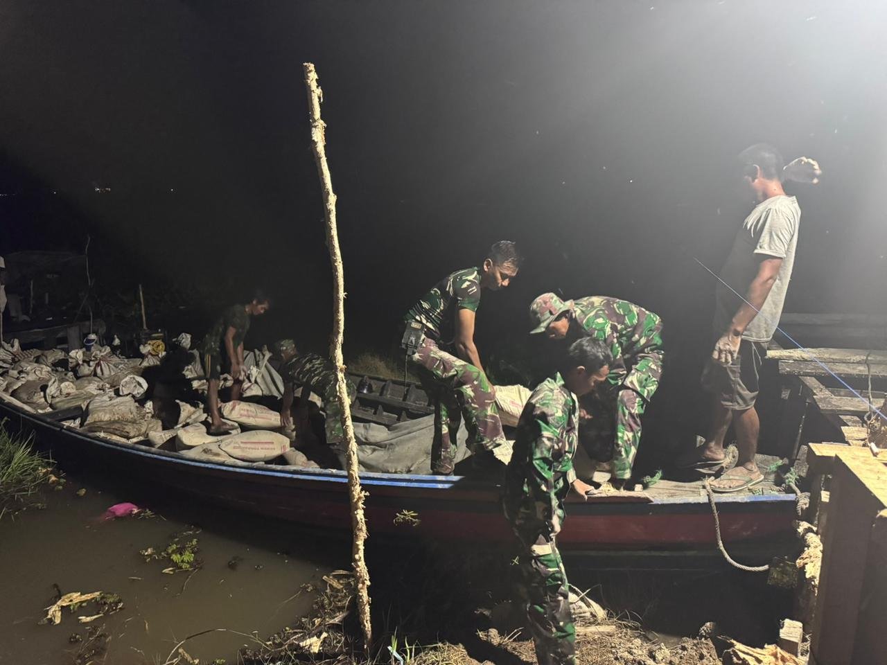 TNI dan masyarakat bahu-membahu bekerja dalam suasana penuh kebersamaan. Waktu malam justru dimanfaatkan untuk menjaga ritme pekerjaan agar target penyelesaian dapat tercapai sesuai rencana yang telah ditetapkan.