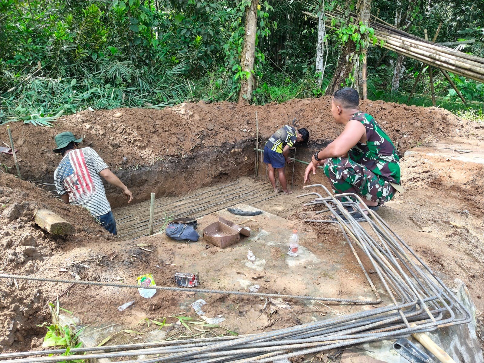 <p>Kopka Fahriansyah, Bintara Pembina Desa (Babinsa) Hulu Banyu yang ada di lapangan, melaporkan &#8220;Saat ini kami fokus pada perakitan konstruksi besi untuk pondasi dan siap untuk langkah berikutnya yaitu pengecoran di posisi titik dekat,&#8221; jelasnya.</p>