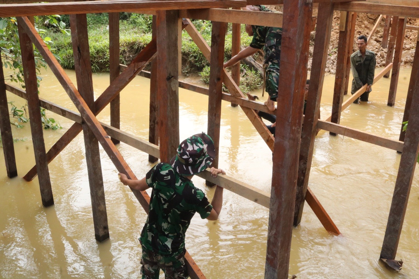“Pembangunan jembatan ini bukan sekadar pembangunan fisik, melainkan sebuah investasi jangka panjang untuk kemajuan masyarakat. Kami memastikan setiap elemen konstruksi, mulai dari pemilihan material kayu ulin yang berkualitas hingga presisi dalam setiap sambungan, telah melalui kajian teknis yang matang. Pengecekan tiang utama dan pemasangan gelagar serta kuncian bawah ini krusial untuk menjamin keamanan dan kekuatan jembatan agar dapat dimanfaatkan oleh warga selama bertahun-tahun, menjadi bukti nyata sinergi antara TNI dan rakyat dalam mewujudkan pembangunan yang merata,” ujar Lettu Arh Suhendri.