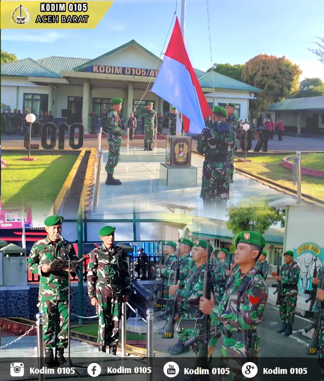 <p><strong>ACEH BARAT</strong> — Dandim 0105/Aceh Barat Letkol Inf S. Kembaren, S.E., M.I.P., CFrA., yang diwakili Kepala Staf Kodim (Kasdim) Mayor Cke Teguh Widodo, memimpin Upacara Bendera Merah Putih rutin yang diikuti oleh para Perwira Staf, Danramil/Danposramil, serta seluruh prajurit dan PNS. Upacara dilaksanakan di Lapangan Apel Makodim 0105/Aceh Barat, Jalan Imam Bonjol, Desa Drien Rampak, Kecamatan Johan Pahlawan, Kabupaten Aceh Barat, Senin (22/12/2025).</p>