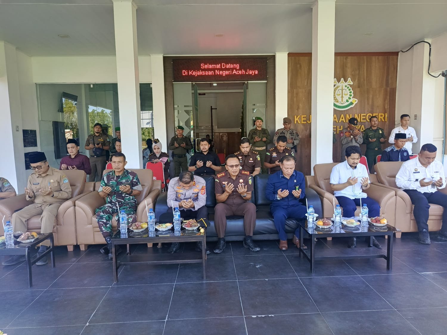 Kegiatan tersebut dihadiri sekitar 50 orang dari unsur Forkopimda dan instansi terkait. Turut hadir di antaranya Bupati Aceh Jaya yang diwakili Asisten, Kepala Kejaksaan Negeri Aceh Jaya, Kapolres Aceh Jaya AKBP Zulfa Renaldo, S.I.K., M.Si., Ketua Pengadilan Negeri Calang, Ketua Mahkamah Syariah Calang, Kepala Lapas yang diwakili Kasubag, Ketua MPU, Kasatpol PP Aceh Jaya, serta personel Wilayatul Hisbah beserta anggota.