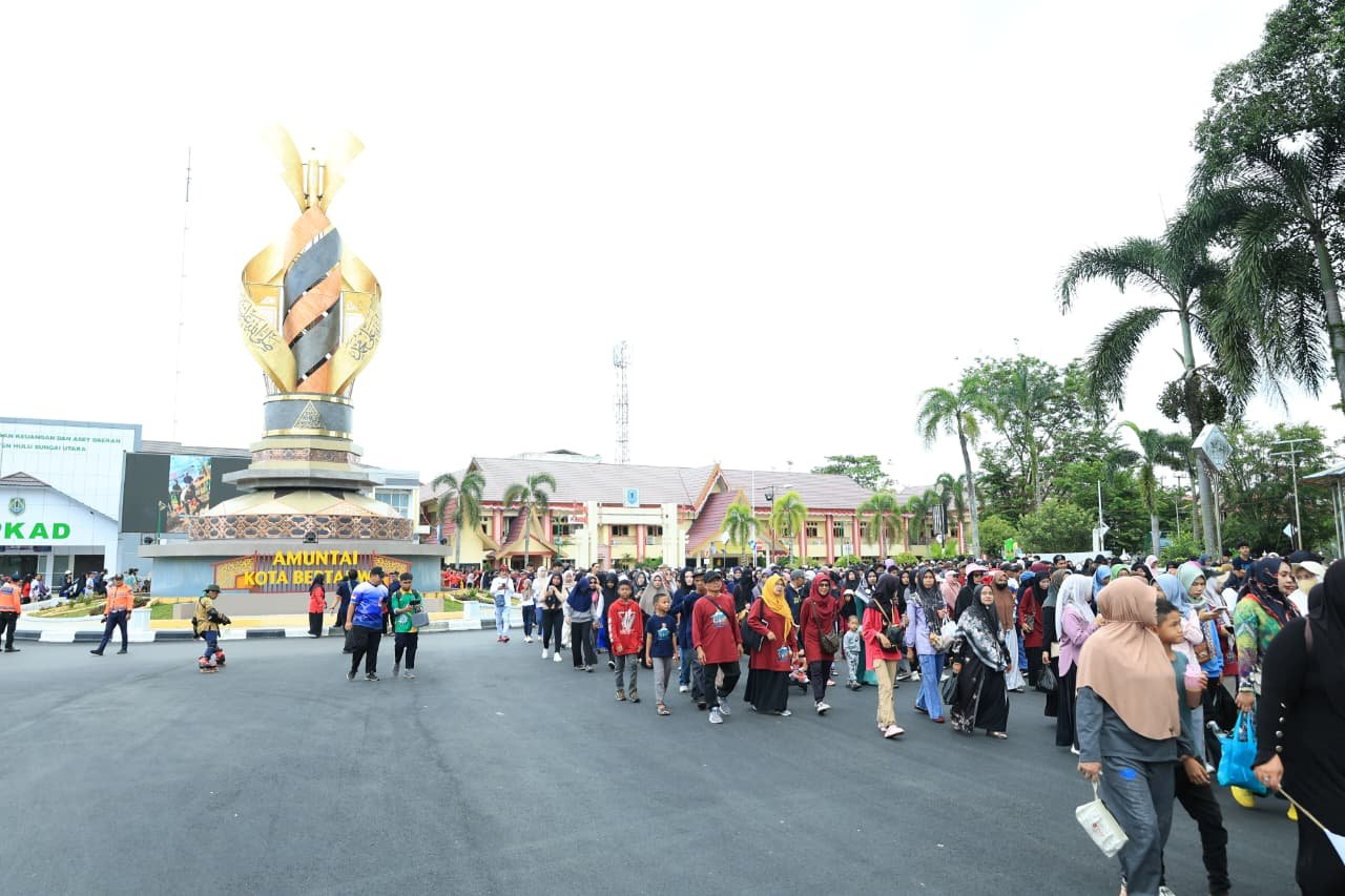 HULU SUNGAI UTARA – Kegiatan Jalan Santai dalam rangka Milad Satu Abad Muhammadiyah Alabio yang dirangkaikan dengan Milad ke-113 Muhammadiyah Tingkat Wilayah Kalimantan Selatan berlangsung meriah di Lapangan Pahlawan Amuntai, Minggu,(16/11/2025).