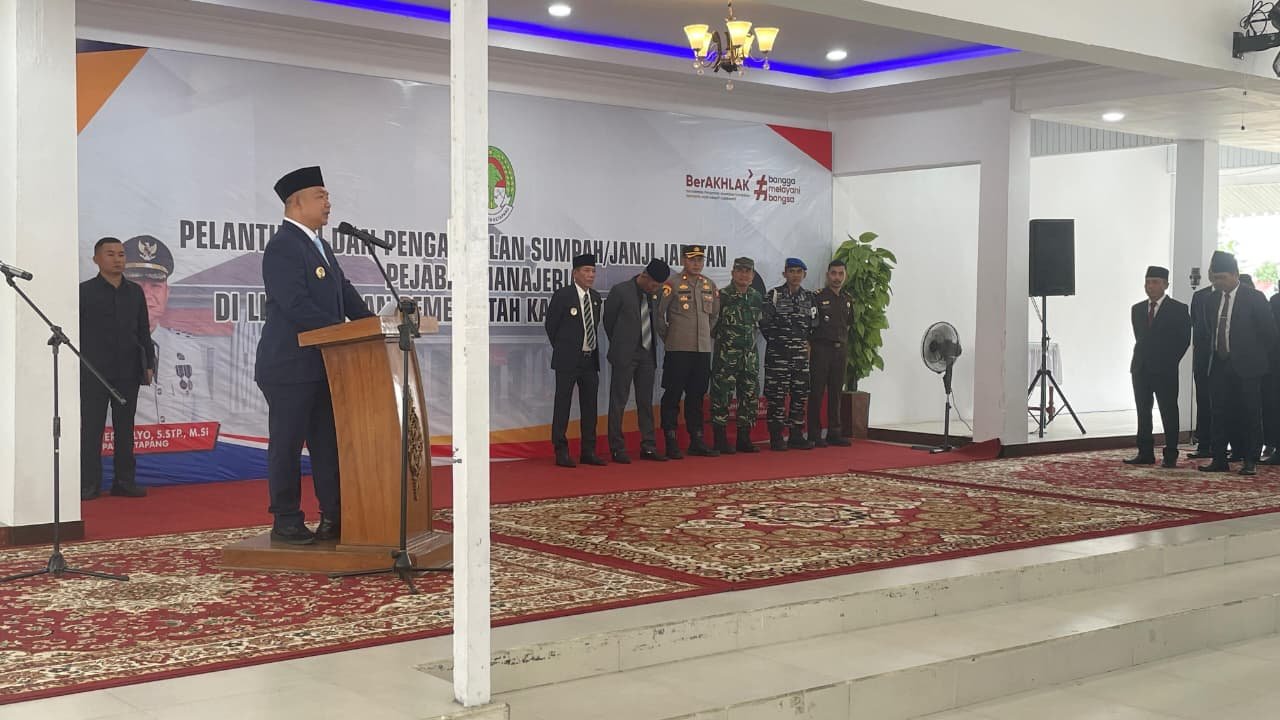 <p>Kegiatan pelantikan tersebut dipimpin langsung oleh Bupati Ketapang dan dihadiri oleh unsur Forkopimda Kabupaten Ketapang serta pejabat terkait lainnya. Pelantikan ini merupakan bagian dari upaya Pemerintah Kabupaten Ketapang dalam penguatan tata kelola pemerintahan serta peningkatan kinerja aparatur sipil negara.</p>