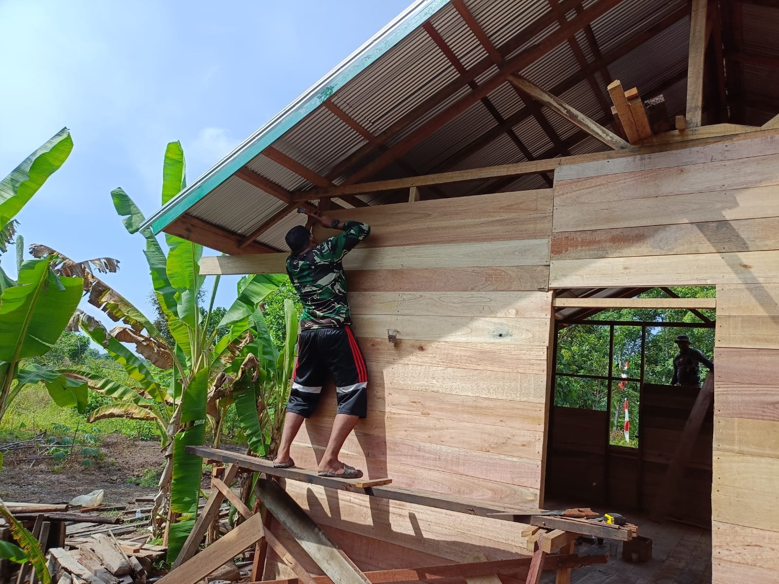 Rumah sederhana ini nantinya akan menjadi tempat tinggal layak bagi Kai Salamun dan keluarganya, sekaligus simbol kebersamaan antara TNI dan rakyat dalam mewujudkan kesejahteraan desa.(1005).