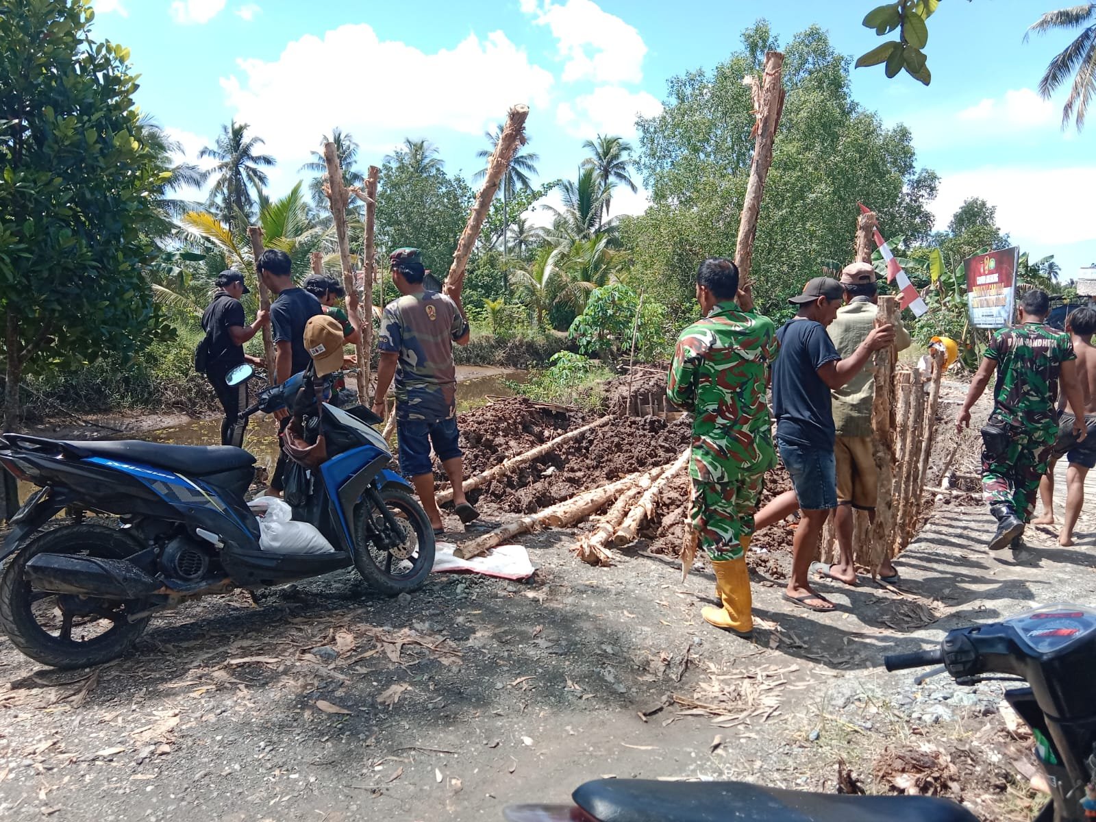 Pada Selasa (14/4/2026) Pada Selasa (14/4/2026) bertempat di Desa Tamban Bangun Kec. Tamban Kab. Barito Kuala, suasana gotong royong begitu terasa saat warga dan Babinsa bekerja bersama mengangkat serta menanam kayu cerucuk sebagai pondasi awal jembatan. Meski harus berjibaku dengan kondisi medan yang basah dan berlumpur, tak satu pun terlihat mengeluh. Justru, canda tawa dan semangat saling membantu menjadi penyemangat di setiap tahapan pekerjaan.