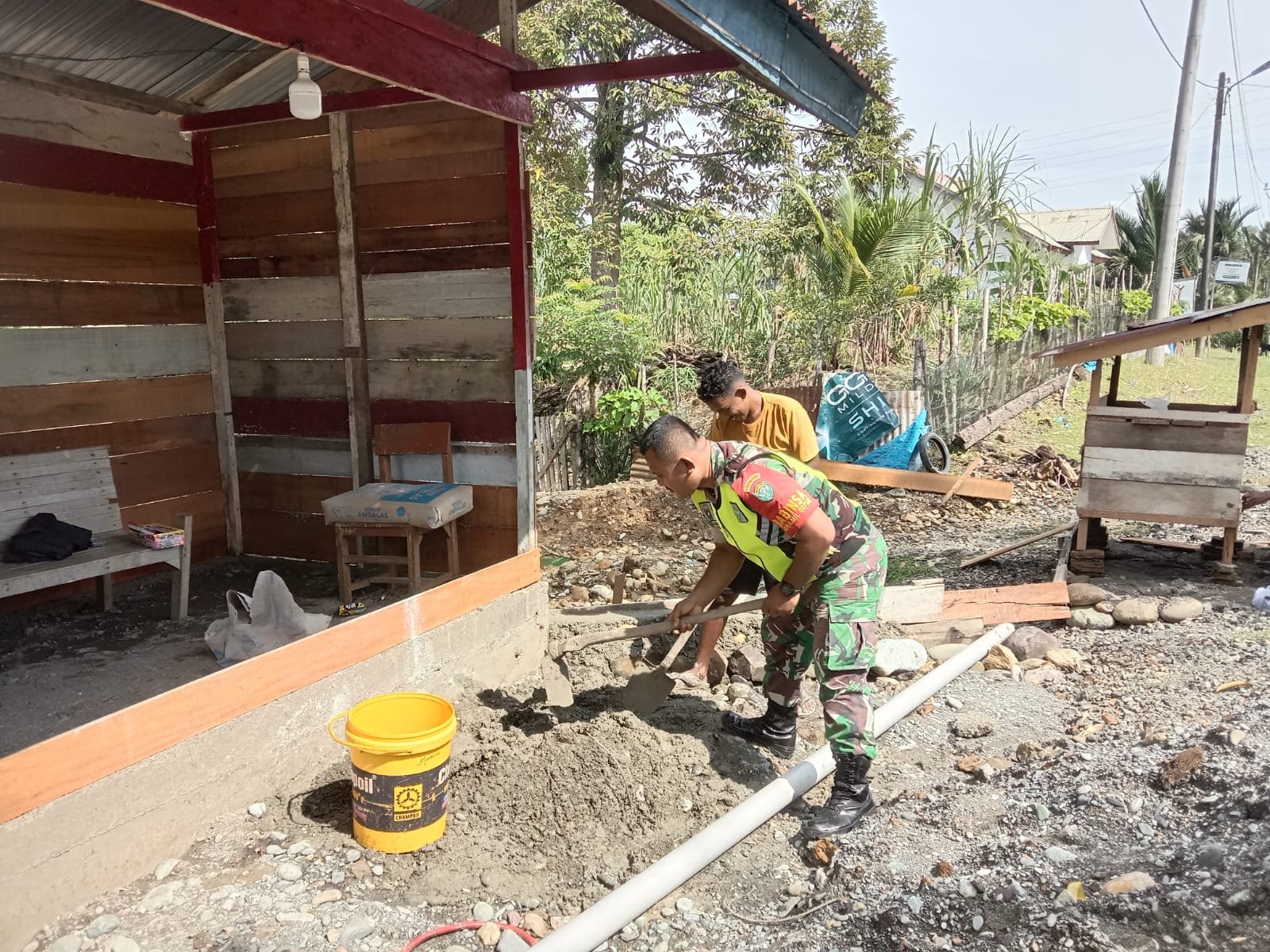Membantu mengatasi kesulitan rakyat sudah menjadi salah satu tanggung jawab yang mutlak bagi prajurit aparat komando kewilayahan (Apkowil). pasalnya, Babinsa merupakan garda terdepan dan ujung tombak Satkowil yang bersentuhan langsung dengan warga binaan di wilayah. tak heran jika Babinsa dengan warganya tampak harmonis dan kerap selalu bersama dalam berbagai kegiatan apapun, seperti halnya yang diimplementasikan oleh koptu Edi Purwoto hari ini.
