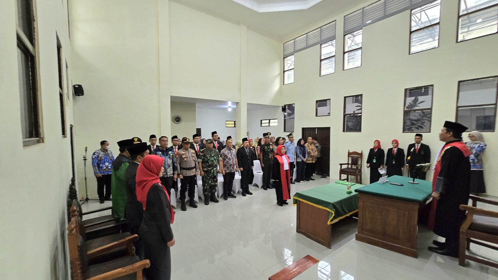 <p>Kegiatan dipimpin langsung Ketua PN Banjarbaru Agus Safuan Amijaya, S.H., M.H., serta turut dihadiri perwakilan Pemerintah Kota Banjarbaru, unsur Forkopimda, pejabat pengadilan, dan instansi terkait lainnya. Prosesi pelantikan meliputi pembacaan SK Mahkamah Agung RI, pengambilan sumpah jabatan, penandatanganan berita acara serta pakta integritas, pemasangan kalung jabatan, hingga amanat Ketua PN Banjarbaru.</p>