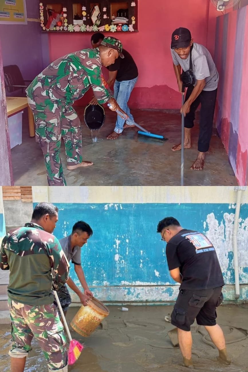 “Semangat bersatu ini adalah wujud solidaritas Babinsa untuk menambah motivasi agar warga berperan aktif membersihkan sarana sekolah. Bantuan tenaga Babinsa sangat mempercepat proses pembersihan dan menjadi modal utama bagi para pelajar agar dapat masuk sekolah dan kegiatan belajar kembali normal. Dengan menggunakan peralatan manual dan semangat yang tinggi, sisa-sisa lumpur berhasil dibersihkan secara bertahap. Semoga anak-anak kita besok dapat melaksanakan ujian sesuai jadwal dan tidak mengalami kendala sekecil apa pun,” tandas Danramil.
