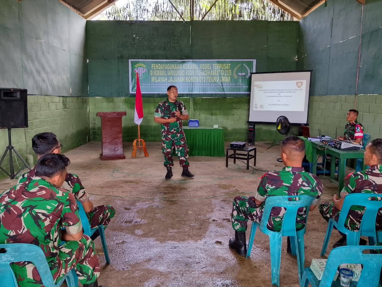Aceh Barat – Dalam rangka meningkatkan profesionalisme dan kemampuan Babinsa sesuai dengan tugas dan tanggung jawabnya, Kodim 0105/Abar menggelar kegiatan Pendayagunaan Koramil Model Terpusat Semester II TA 2025 di wilayah Korem 012/Teuku Umar. Kegiatan ini berlangsung di Aula Serba Guna Makoramil 04/Meureubo, Jalan TMMD Desa Paya Peunaga, Kecamatan Meureubo, Selasa (21/10/2025).