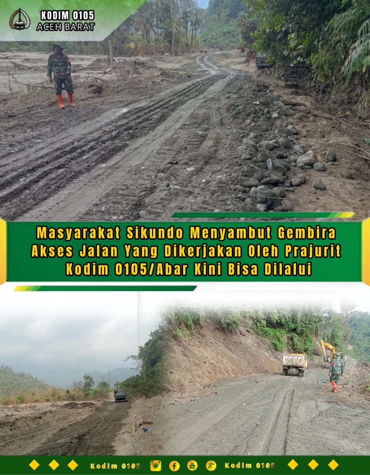<p><strong>ACEH BARAT</strong> — Dengan penuh semangat 55 dan disertai ketulusan hati, prajurit Kodim 0105/Abar terus bekerja maksimal melakukan pembangunan infrastruktur jalan penghubung Desa Jambak–Sikundo, Kecamatan Pante Ceureumen, Jumat (30/1/2026).</p>