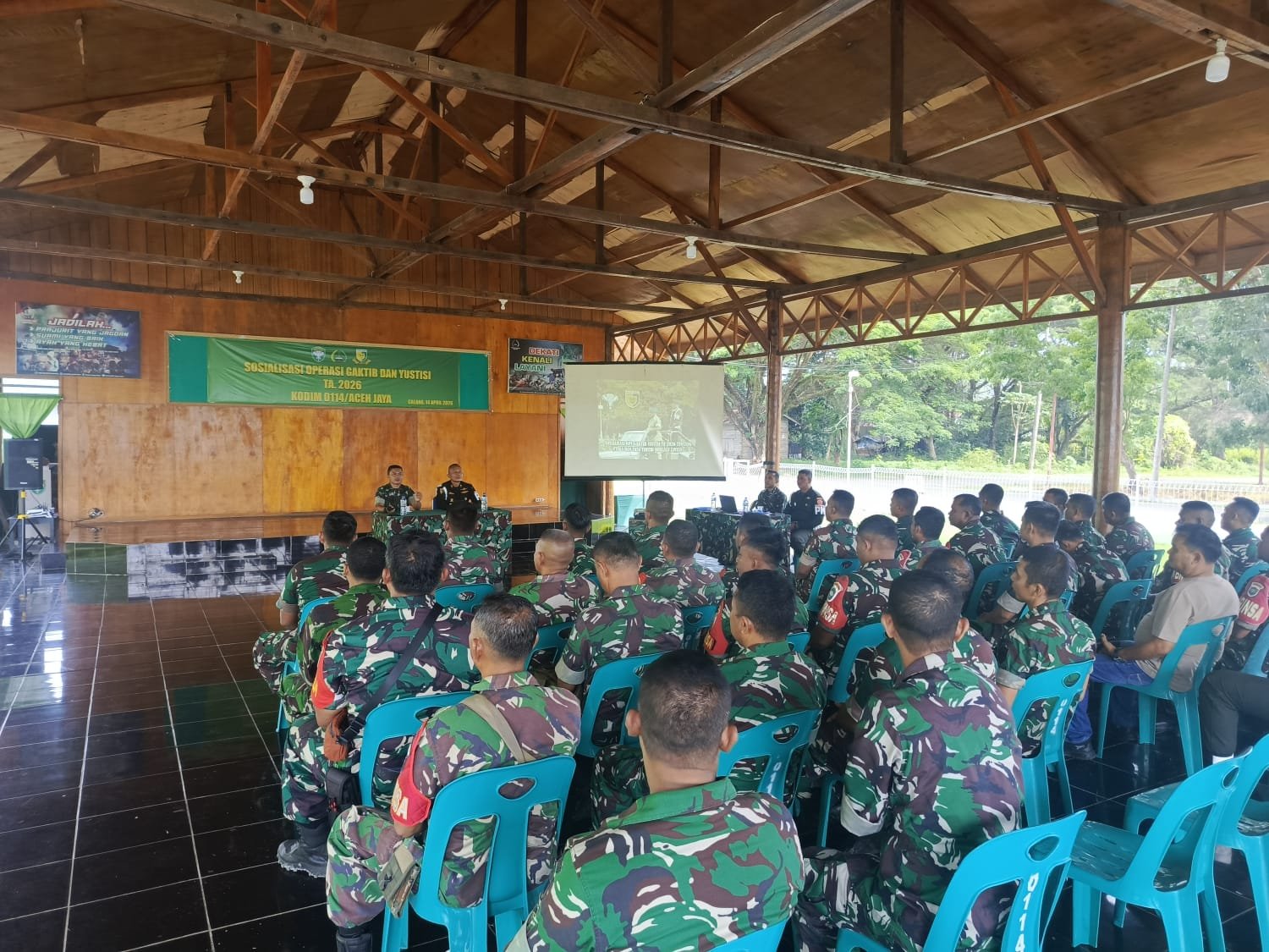 <p>Dalam kegiatan tersebut, sosialisasi materi disampaikan langsung oleh Dansubdenpom Calang Lettu Cpm Mardiwance sebagai narasumber. Ia memberikan penjelasan secara komprehensif mengenai pelaksanaan Operasi Gaktib dan Operasi Yustisi yang dilaksanakan secara berkala di lingkungan TNI.</p>