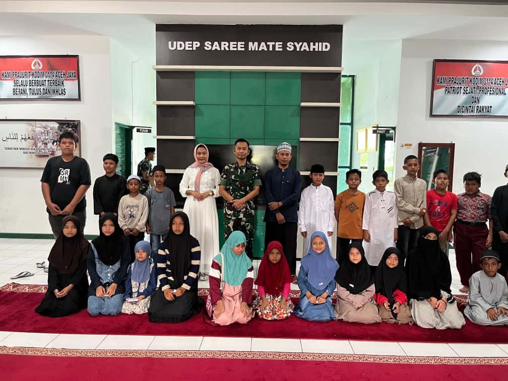 ACEH JAYA – Komandan Kodim 0114/Aceh Jaya, Letkol Czi Aris Widiatmoko, S.I.P., bersama seluruh personel Kodim 0114/Aceh Jaya dan Ketua Persit Cabang XXXIX Kodim 0114/Aceh Jaya, Ny. Aris Widiatmoko, beserta jajaran pengurus, melaksanakan kegiatan doa bersama yang dilanjutkan dengan penyerahan santunan kepada 25 anak yatim. Acara yang khidmat ini diselenggarakan dalam rangka memohon keselamatan dan keamanan bagi Kodim 0114/Aceh Jaya serta seluruh jajarannya, Jumat (19/09).