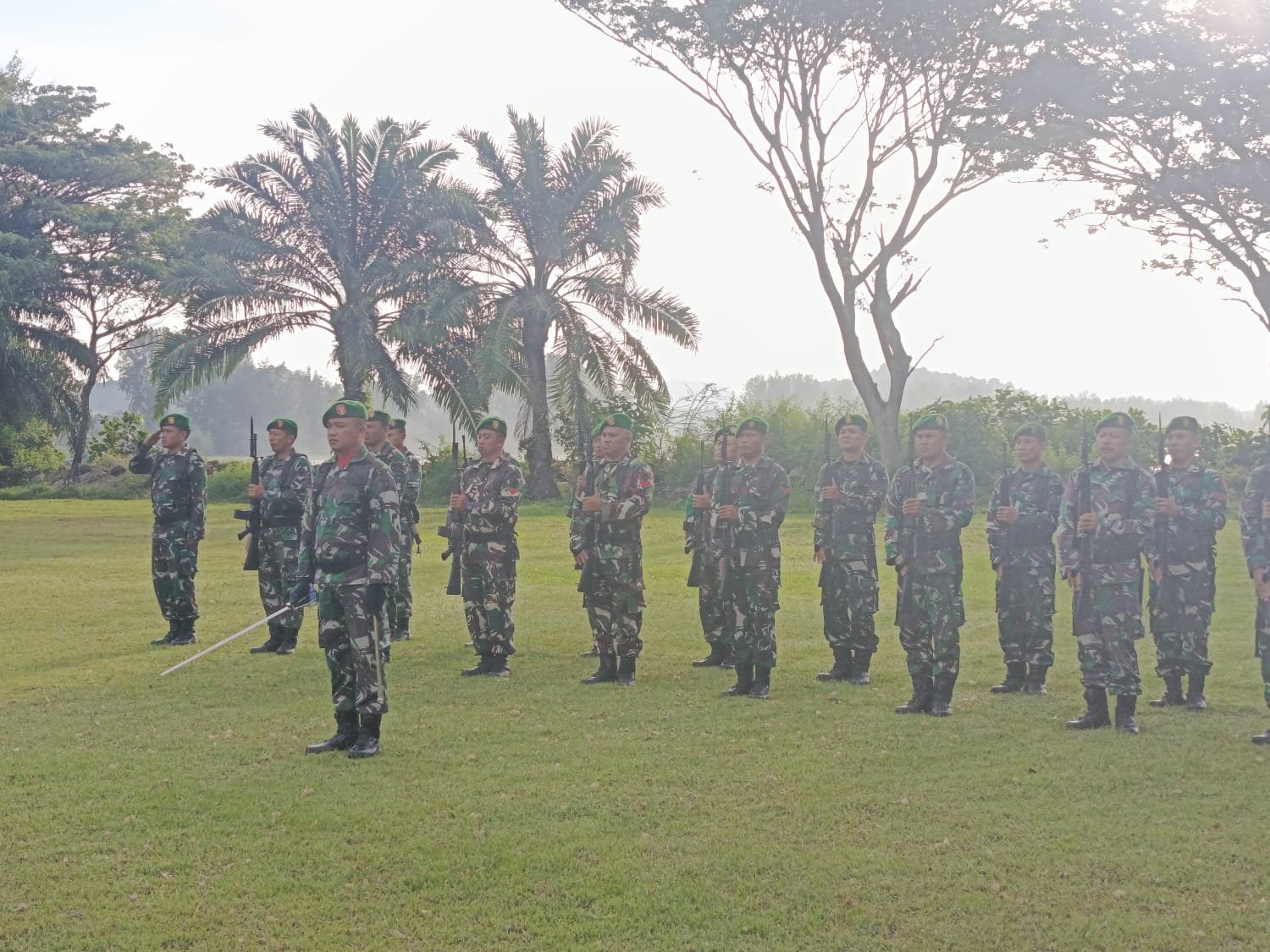 Sejak pagi hari, para prajurit telah berbaris rapi di lapangan untuk mengikuti rangkaian upacara yang dilaksanakan sesuai dengan tata upacara militer. Seluruh peserta tampak mengikuti setiap tahapan kegiatan dengan disiplin dan penuh rasa tanggung jawab.