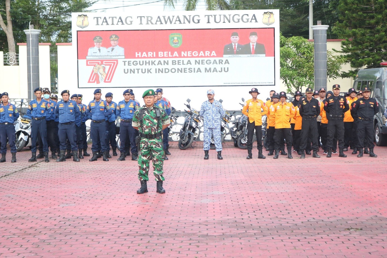 KUTAI TIMUR – Dalam rangka memperingati Hari Bela Negara ke-77, personel Kodim 0909/Kutai Timur bersama unsur Forkopimda, instansi pemerintah, pelajar, serta masyarakat melaksanakan upacara bendera yang berlangsung khidmat di lapangan upacara, Kamis (19/12/2025).