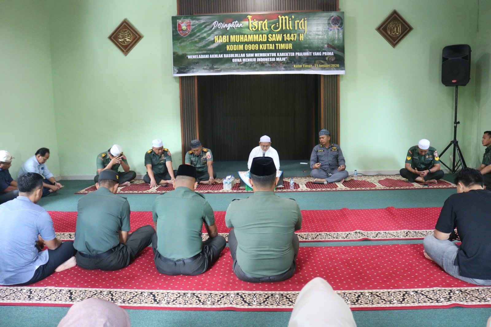 Komandan Kodim 0909/Kutai Timur melalui Kapten Arh M. Jabal dalam sambutannya menyampaikan bahwa peringatan Isra Mi’raj bukan sekadar kegiatan seremonial, melainkan sarana introspeksi diri guna meningkatkan disiplin, moral, serta etos kerja prajurit. Nilai-nilai keimanan diharapkan mampu membentuk karakter prajurit yang profesional, humanis, dan senantiasa dekat dengan rakyat.